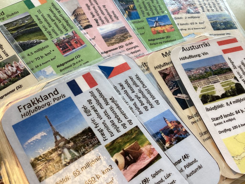 Eins og fram hefur komið á síðunni um Top Trumps spil þá er mjög freistandi og gríðarlega fræðandi að búa til sín eigin Top Trumps bunka. Top Trumps spil eru einfaldlega upplýsingaspjöld og geta fjallað um nánast hvað sem er. Það sem ég hef helst dundað mér við að útbúa er bunki með upplýsingum um lönd Evrópu annars vegar og ríki Bandaríkjanna hins vegar. Nemendur mínir hafa haft mjög gaman af því að spyrja hvert annað út í þær upplýsingar sem þarna koma fram: Mannfjöldi, stærð, fjöldi nágrannaríkja og svo framvegis.