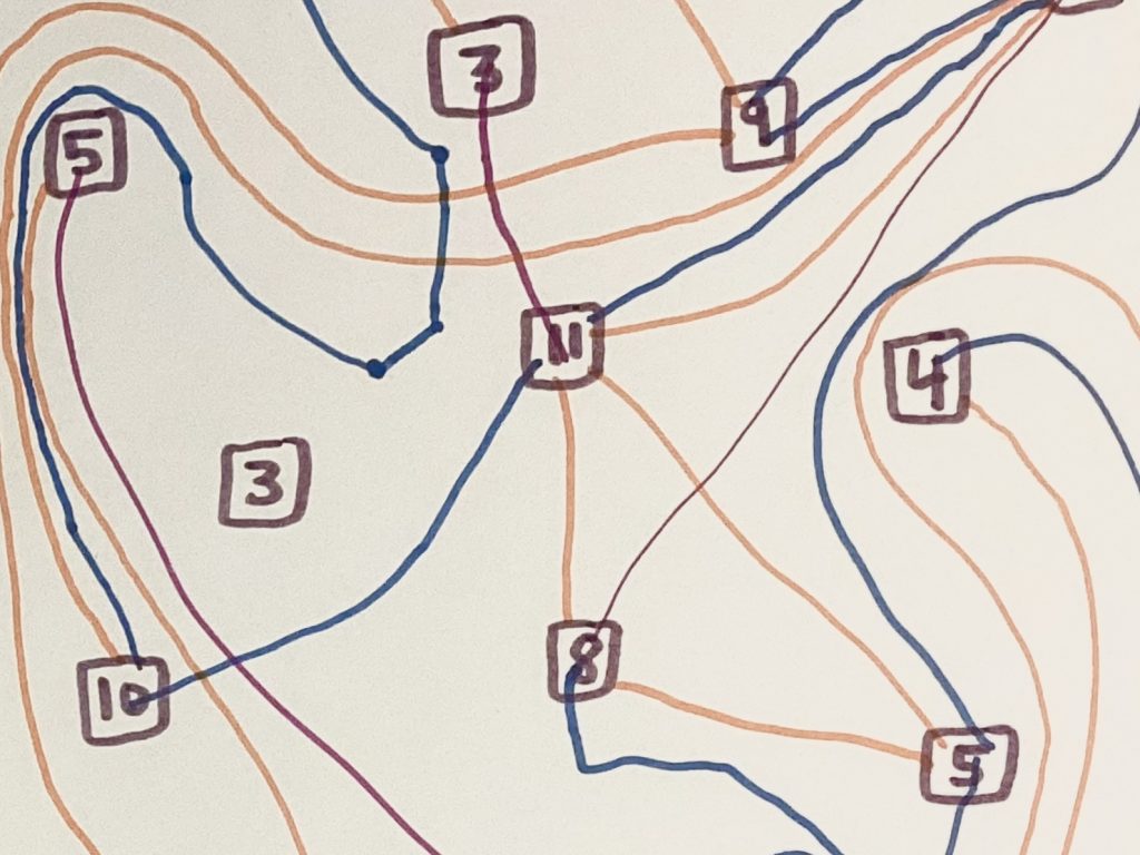 Þetta var lítið spil sem ég fann í kennslubók sem ég hef ekki fundið aftur. Spilið hét upprunalega Sauðaþjófurinn en ég sé ekki hvers vegna það ber þetta undarlega nafn. Spilið hef ég hins vegar kallað einfaldlega Línuflækjan. Spilið gengur út á að tengja saman tölur í kassa með litum í mismunandi litum. Keppendur kasta teningum til skiptis og margfalda (eða leggja saman, það fer eftir útgáfum) og finna þannig næstu tölu sem þarf að tengja við en vandinn er sá að það má ekki fara yfir neitt strik á leiðinni.