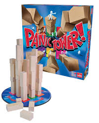 Panic Tower gengur út á að byggja turna út frá leiðbeiningum án þess að þeir falli. Leikurinn hefst með því að keppendur raða nokkrum kubbum tilviljunarkennt á sérstakan grunn með litamynstri. Eftir það fær hver keppandi fyrirmæli á spjöldum um að bæta við turnana eftir ýmsum litamynstrum. Æsispennandi fyrir keppendur að sjá hvaða turn stendur og hver fellur. Reynir mikið á fínhreyfingar og þolinmæði.